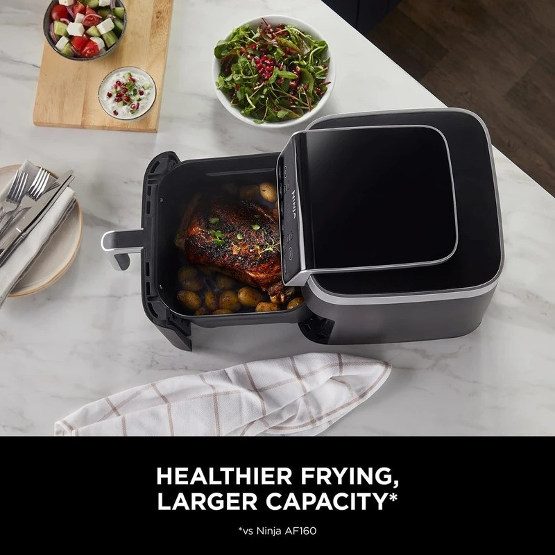 سرخکن هوای گرم نینجا تا 60٪ صرفهجویی در انرژی و 50٪ سریعتر از اجاقهای سنتی عمل میکند. با 75٪ چربی کمتر غذاهایی سالمتر آماده کنید و از روغن کم یا بدون روغن استفاده کنید. این دستگاه با 6 عملکرد متنوع شامل سرخکردن، برشتهکردن، پختن و آبگیری، گزینهای ایدهآل برای پخت سریع غذاهای اصلی و میانوعدههاست. ظرفیت 6.2 لیتری آن برای خانوادهها مناسب بوده و فضای کافی برای 4 سینه مرغ دارد. محتویات شامل کشوی نچسب قابل شستشو، توری قابل تنظیم و کتاب آشپزی است. رنگ خاکستری با طراحی جمعوجور و کارآمد، انتخابی شیک برای آشپزخانه شما!
