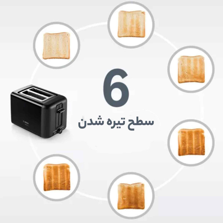 توستر bosch 3P423 با توان 970 وات انواع نان در مدل ها و ضخامت های مختلف را به خوبی گرم می کند؛ گویی نان تازه از نانوایی گرفتید. این مدل در 6 سطح مختلف آن طور که دوست دارید، نان را برشته می کند. از دیگر مزیت های خوب این محصول سیستم برشته کردن نان به صورت متمرکز جهت برشته شدن یکنواخت هر دو طرف نان و خاموش شدن خودکار جهت افزایش ایمنی می باشد.
