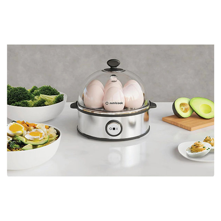 تخم مرغ پز نوتریکوک مدل NC-EC360 دستگاهی با طراحی ساده و زیبا به رنگ نقره ای، رومیزی، جمع و جور و سبک بوده که در عرض چند دقیقه تخم مرغ ها را می پزد. این تخم مرغ پز دارای 2 ظرف یکی با 7 جایگاه جهت آب پز کردن تخم مرغ و دیگری کاسه برای تهیه نیمرو و انواع املت می باشد. بدنه دستگاه از کیفیت ساخت خوبی برخوردار بوده از فلز و پلاستیک ساخته شده ایک درپوش شفاف با دریچه ای جهت خروج بخار برای این محصول در نظر گرفته شده که امکان مشاهده تخم مرغ ها حین پخت را فراهم می کند. سینی تخم مرغ با 7 جایگاه و کاسه و پیمانه از جنس پلاستیک بدون BFA و قابل شستشو در ماشین ظرفشویی هستند. طراحی جمع و جور و شیک این اجاق تخم مرغ، آن را به یک افزودنی عالی برای هر میز آشپزخانه تبدیل کرده است.