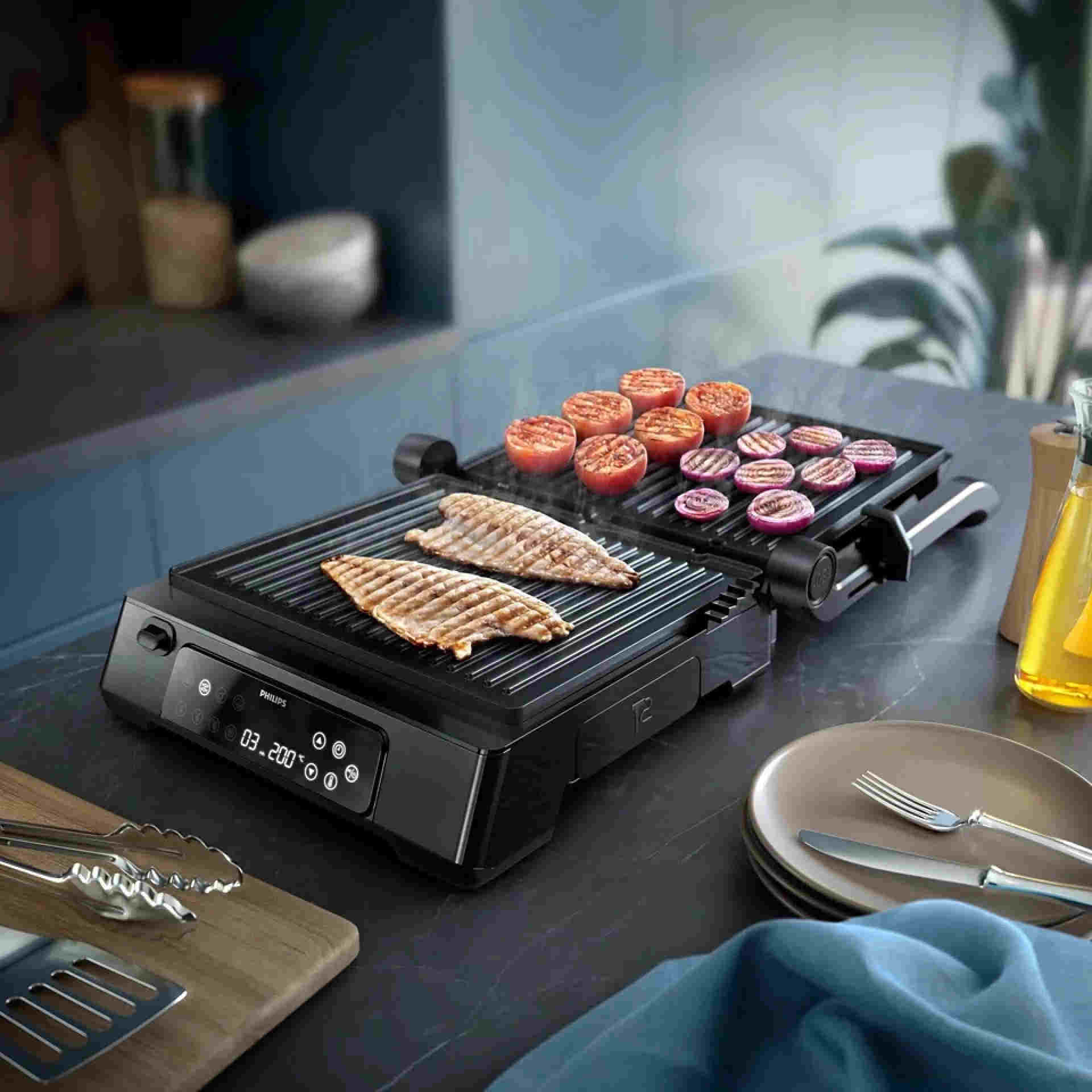 گریل و کباب کردن خوشمزه انواع مواد غذایی با گریل فیلیپس مدل HD6307 از سری 7000 یکی از بهترین گزینه ها است تا همیشه از غذاهای متنوع و خلاقانه بهره ببرید. راز کباب کردن عالی، حرارت مناسب است. انتخاب دقیق حرارت و پروب دما نتایج عالی را ارائه می دهد و غذاها از داخل پخته و از بیرون ترد و برشته هستند. همه غذاهای مورد علاقه خود، از استیک گوشت گرفته تا ماهی و سبزیجات را کباب کنید و از سادگی و سرعت کار لذت ببرید.