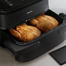 از آنجایی که این سرخ کن دارای دو محفظه پخت بوده می توان درون هر محفظه مواد غذایی یکسان یا متفاوت را قرار داده و آماده کرد. شما می توانید زمان های پخت را به طور خودکار در 2 کشو همگام سازی کنید تا هر دو غذای شما با هم آماده سرو شوند. هنگام آشپزی با این سرخ کن دو سبدی فیلیپس در مقایسه با فر سنتی، تا 40٪ سریع تر بپزید و تا 75٪ در مصرف انرژی صرفه جویی کنید. سیستم خاموش شدن خودکار موجب شده تا بعد از پخت غذا، دستگاه خاموش گردد و احتمال سوختن به شدت کاهش یابد.
