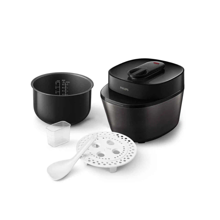 سیستم ایمنی: شرکت فیلیپس برای این محصول خود 18 سیستم حفاظت ایمنی برای پخت و پز بدون نگرانی در نظر گرفته که یکی از آنها خاموشی خودکار میباشد. نحوه عملکرد این سیستم اینگونه است که اگر دستگاه بدون آب روشن شود یا دمای آن خیلی بالا رود، دستگاه به طور خودکار خاموش می شود. از دیگر ویژگی های امنیتی این مولتی کوکر میتوان به پایه های ضد لغزش آن اشاره کرد که در هنگام کار از هرگونه لغزش جلوگیری میکنند.