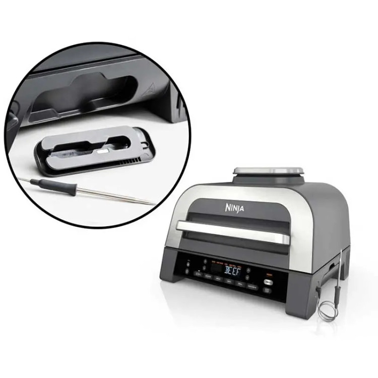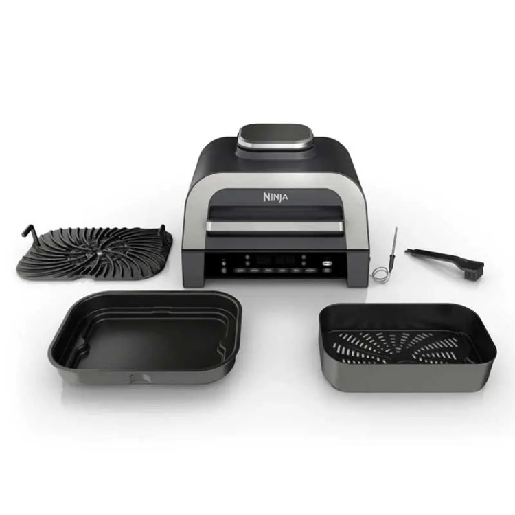 گریل نینجا مدل DG551 با طراحی زیبا و منحصر به فرد به رنگ استیل/خاکستری جلوه مدرنی به دکوراسیون آشپزخانه شما می بخشد. این دستگاه از نوع رومیزی و جمع و جور بوده که روی پیشخوان یا میز آشپزخانه فضای زیادی را اشغال نمی کند. صفحات این گریل از ظرفیت خوبی برای طبخ مواد غذایی برخوردار بوده و تا 6 استیک، حداکثر 24 هات داگ را می توان همزمان آماده کرد. همچنین در سینی پخت دستگاه می توان حجم زیادی سیب زمینی خلالی، قارچ خرد شده و غیره را سریع درست کرد.