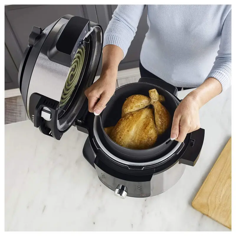در این حالت غذای شما با استفاده از روغن کم یا بدون روغن سرخ و ترد می گردد و غذاها تا 75 درصد، چربی کمتری نسبت به روش های سرخ کردنی سنتی دارند. از غذای سرخ شده بدون نگرانی بابت چاق شدن لذت ببرید و غذاهایتان که از داخل نرم و از بیرون ترد و طلایی هستند، لذت ببرید. همه چیز را از چیپس طلایی، سیب زمینی و قارچ سرخ کرده و مخلوط سبزیجات گرفته تا ماهی، تکه های مرغ و استیک را با سالم ترین روش ممکن درست کنید. همبرگرهای خوشمزه، سیخ های حلومی و سینه مرغ ترش شده را گریل کنید. انواع کیک، کلوچه و شیرینی ها را بپزید. استیک ها را کاملاً بپزید. برای تهیه سس های خوشمزه، مواد را تفت دهید و پیاز را طلایی کنید تا بیشترین طعم را دریافت کنید. سبزیجات سالم و برنج کاملا پخته شده را بخارپز کنید. غذاها را تا 12 ساعت آهسته بپزید تا اطمینان حاصل کنید که ریزوتو، کاسرول یا گوشت شما پس از رسیدن به خانه آماده است. برای ایجاد چیپس سبزیجات، تنقلات میوه های خشک، ترشی خانگی و سبزی های خشک، مواد را آبگیری کنید. حتی ماست خود را درست همانطور که دوست دارید، بسازید.