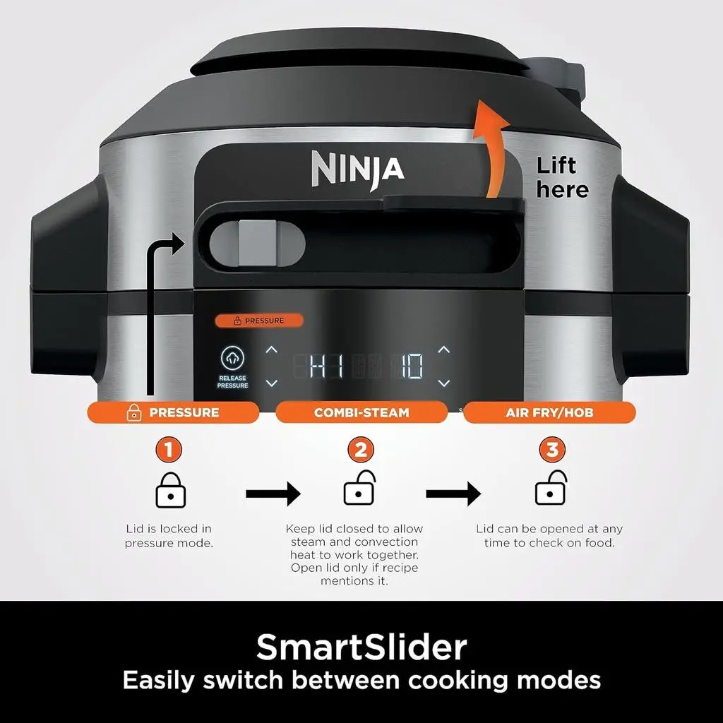 مولتی کوکر نینجا OL650 یکی از جدیدترین و به روز ترین وسائل برقی در آشپزخانه است که به کمک آن می توانید به راحتی انواع غذاهای خوشمزه و خلاقانه را پخت و پز نمایید. به سادگی نوار لغزنده SmartLid را حرکت دهید تا بین 3 حالت پخت جابجا شوید که شامل آشپزی تحت فشار، سرخ کردن هوا یا بخار ترکیبی می باشد. SmartLid به طور خودکار تشخیص می دهد که کدام عملکرد مورد استفاده قرار می گیرد و بر اساس آن تنظیمات لازم را اعمال می کند.
